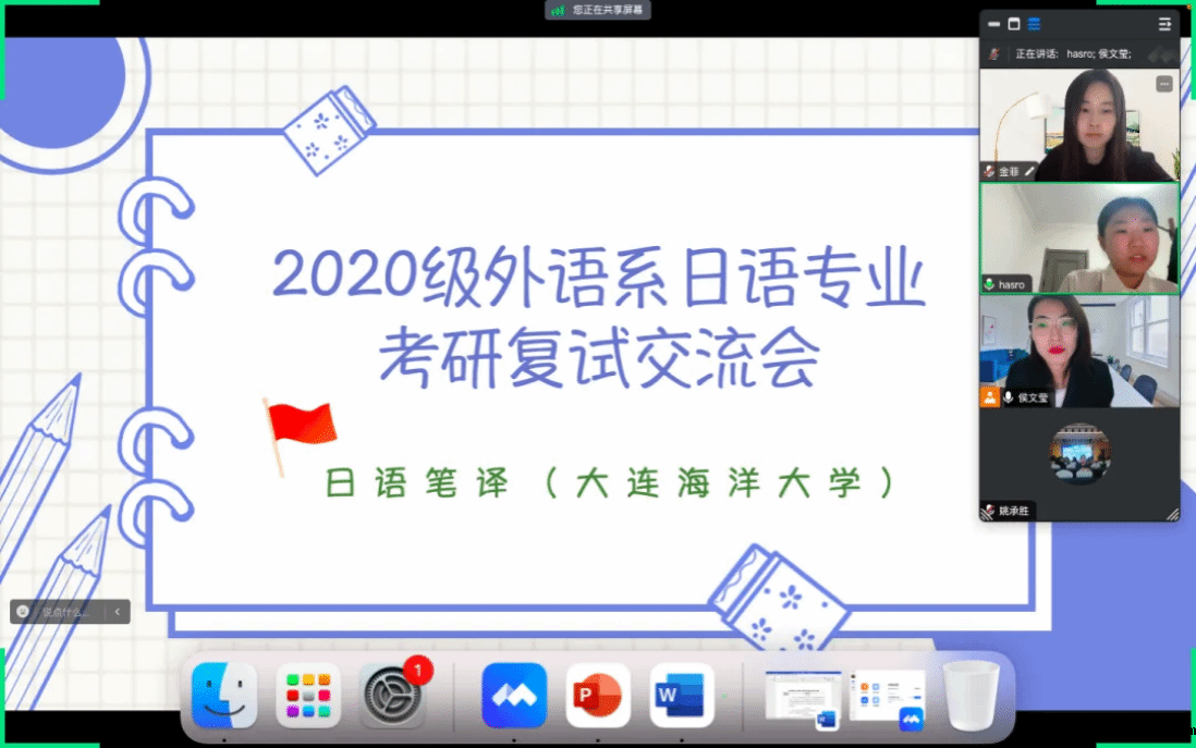 为帮助日语专业考研学子明确复试方向,解答复试准备阶段疑惑,使考研学子从容应对复试与调剂,日语教研室分别于3月22日晚和3月26日下午,开展了线上考研复试交流会及线下复试面试指导。