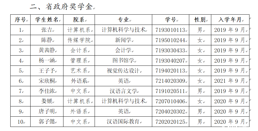 2021-2022学年国家奖学金、省政府奖学金评选结果公示